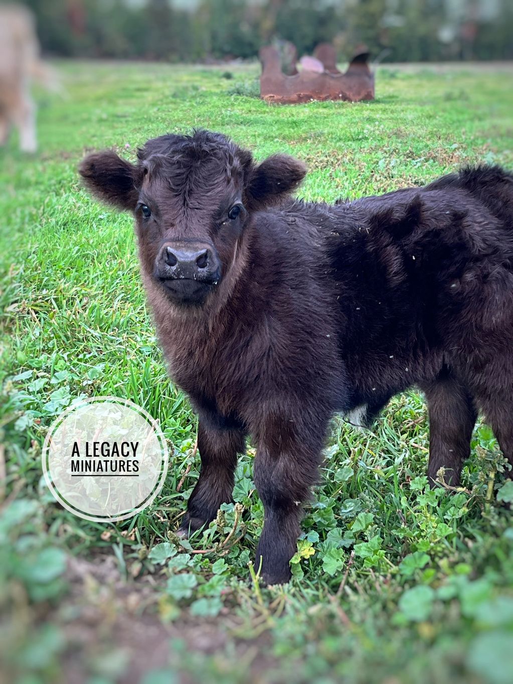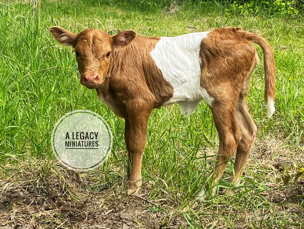 This little shorty was born September 6th to our black Highland girl, Rosa & is sired by our Highpark bull, Heartbreaker from Pandarosa miniatures. He is built thick and stout, and is loaded with beautiful dense hair! He is the perfect little fella! He is available as a future herd sire bull or a tiny pet steer.